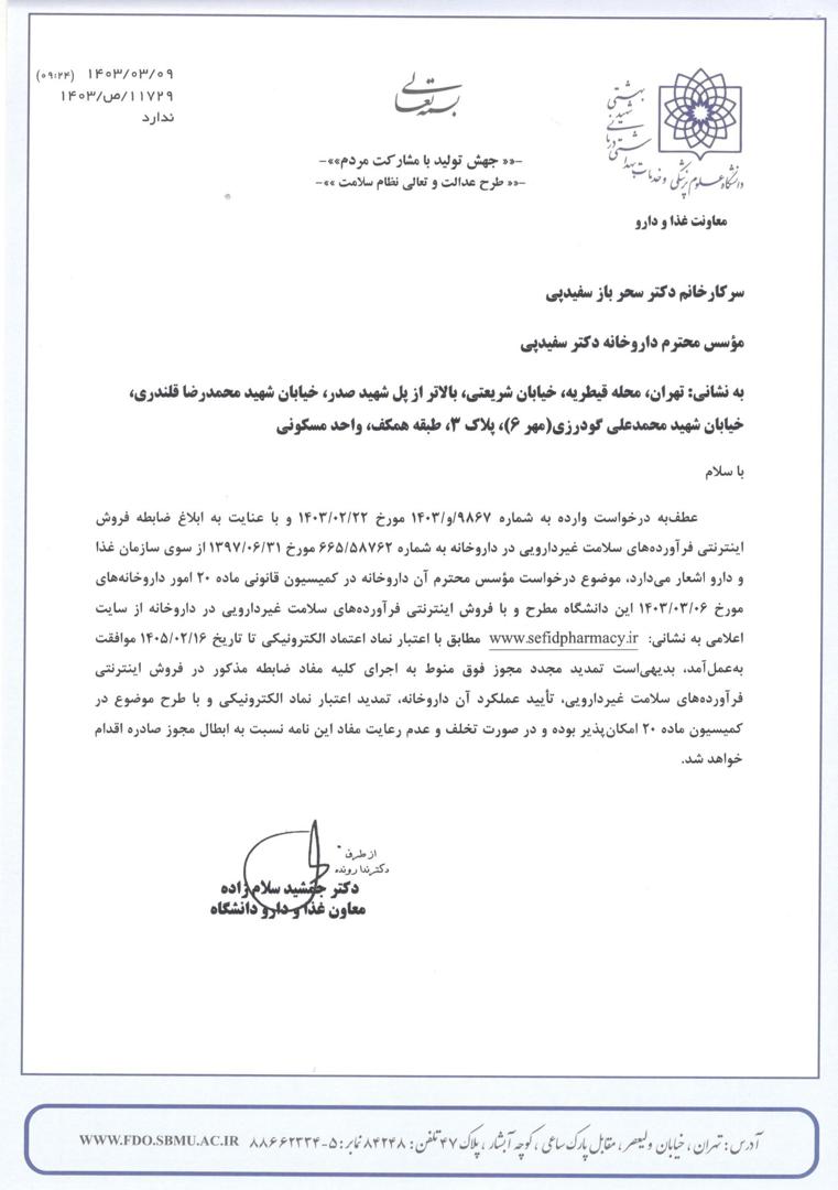 تمام حقوق این سایت متعلق به داروخانه دکتر سفیدپی است.